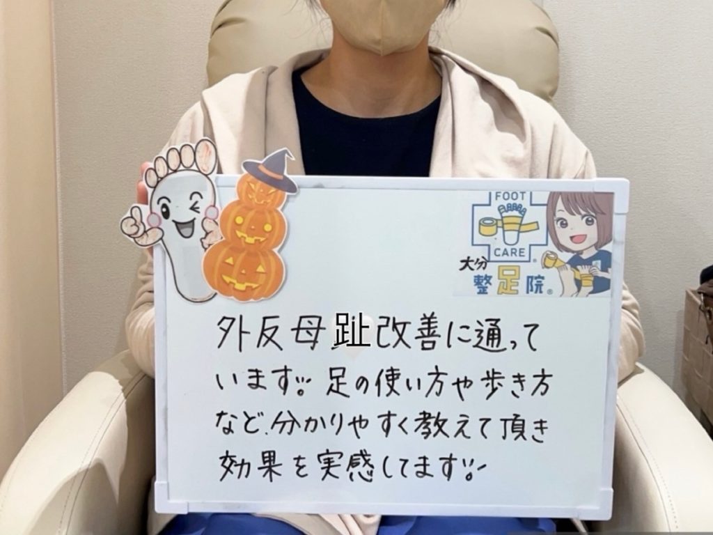 年齢とともに徐々に外反母趾が悪化し、見るからに出っぱってきていましたし、太いヒールでも痛みで辛くなってきたので、まずは足を専門としている整形外科クリニックを受けました。レントゲンを撮って骨の状態をみて、インソールの提案を受けましたが、もし手術してもインソールはずっと使い続けると聞き、期待していた方向性と違っていたので困っていた矢先に整足院さんと出会いました。
