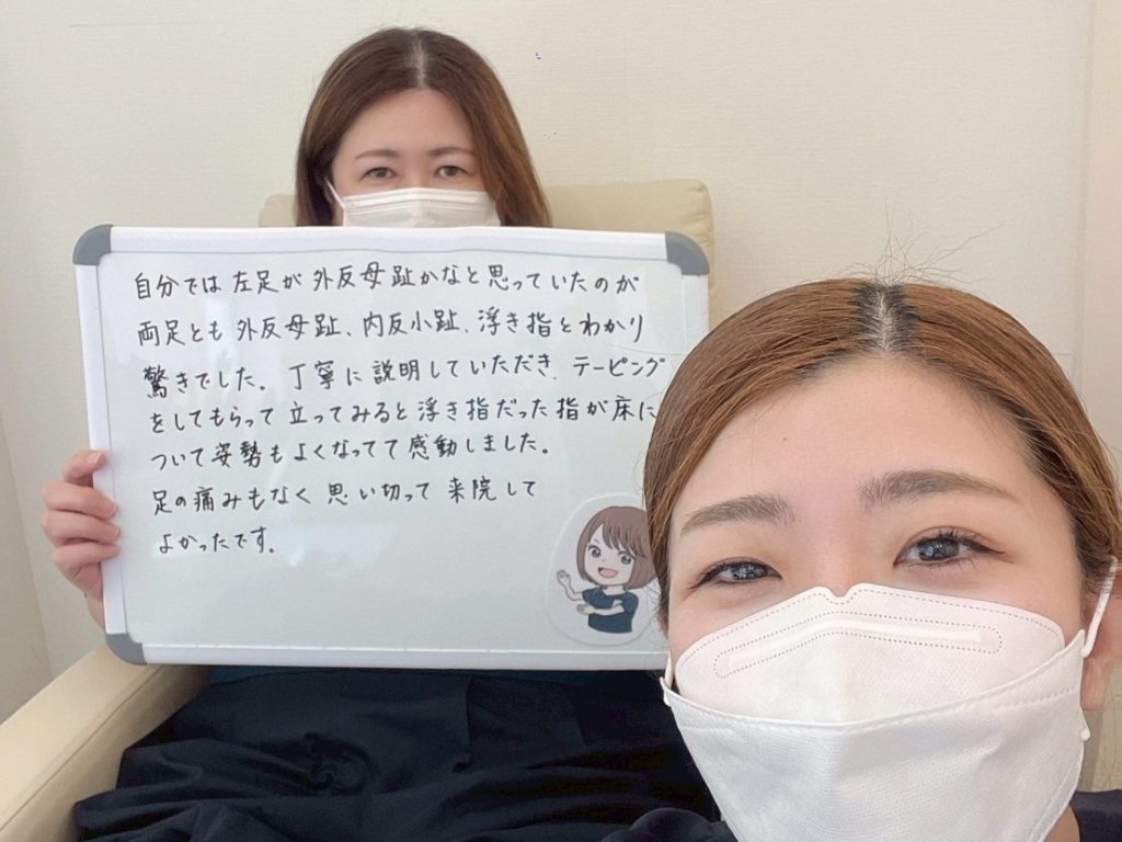外反母趾があると革靴をはいただけで痛みを感じるだけでなく、腰痛や肩こり又は年配になってから転倒しやすくなると聞き、改善させたいと思っていた所にこちらの整足院を見つけ通う事にしました。